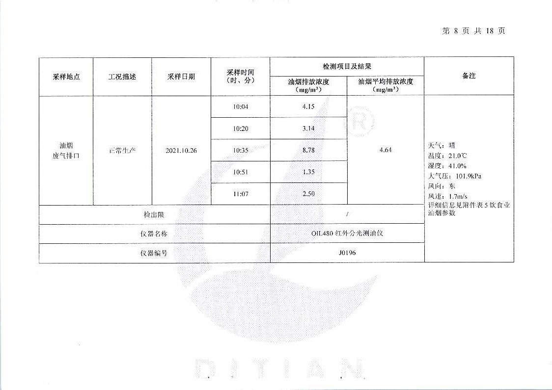 2021年10月环境监测报告